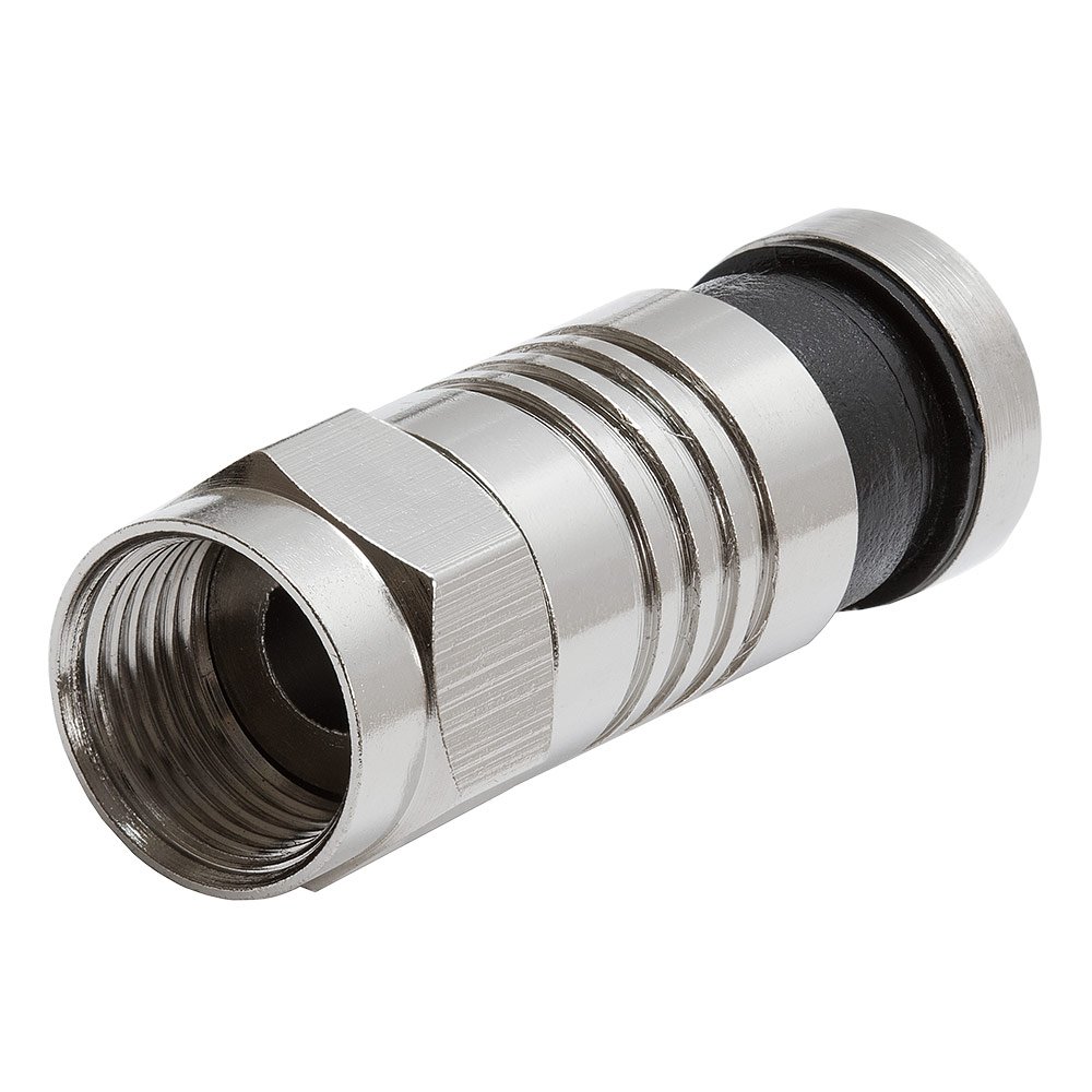 Compression F Type Connector for RG59 with Black Tail These High quality connectors are designed to provide a professional, secure, waterproof connection for RG59 coaxial cable. These compression connectors are easy to attach and Compatible with a wide range of coax cables such as antennas, CATV, Satellite, CCTV, Boadband Cabling, etc. Works with most standard compression tools Weatherproof connectors Single crimp termination with captive center contact design Color: Chrome with black tail