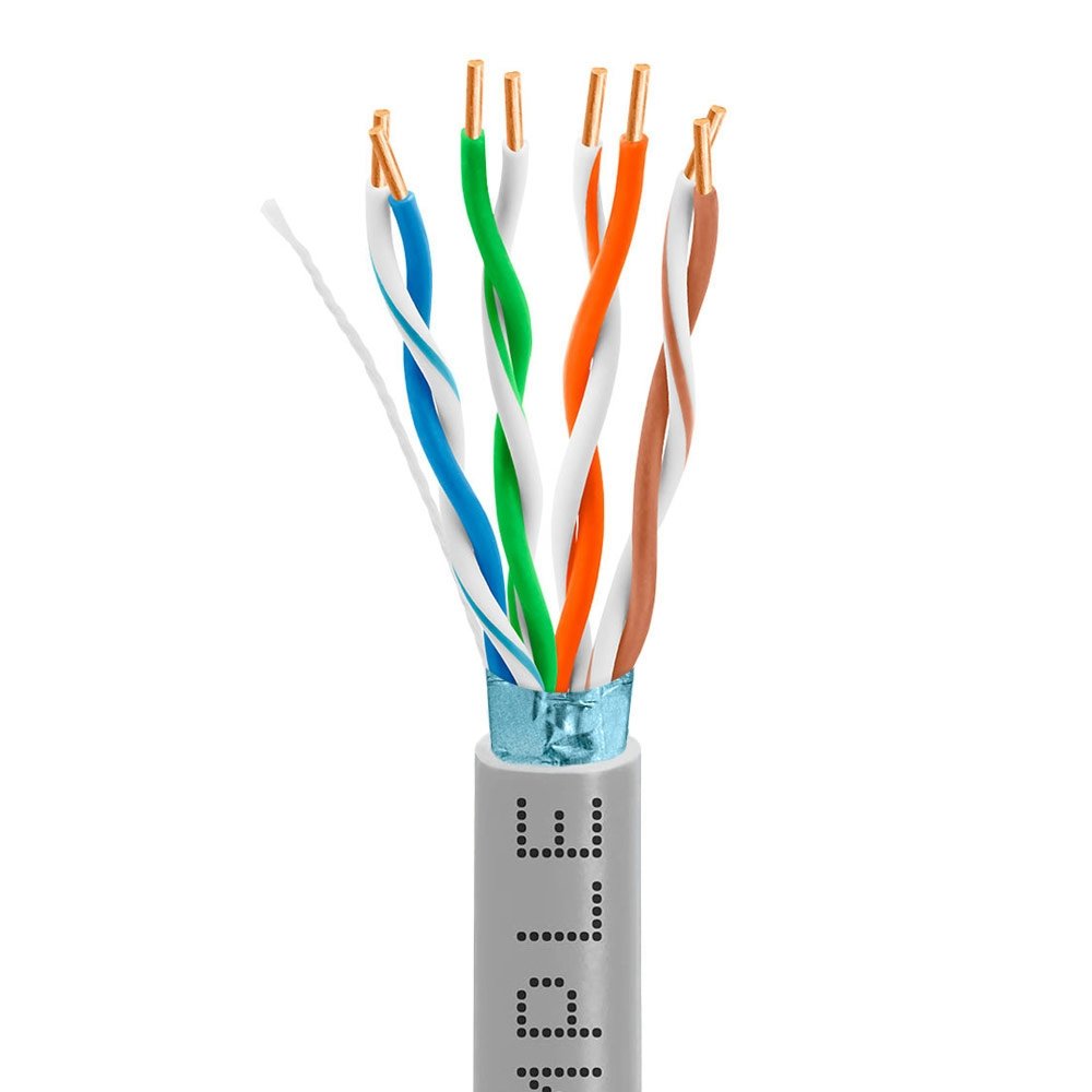 Cmple - Cat5e FTP Shielded 24AWG Solid Bare Copper Bulk Ethernet Cable - 1000FT Gray Category 5E cable is used for computer networking (10/100/1000BASE-T), data, voice, or security system installation. Wiring your home, home office, office, or even an entire factory.This Cat5e Foil Shielded Twisted Pair (FTP) Shielded Cable consists of numerous pairs of copper wiring that are encompassed in aluminum foil. The foil casing provides proper insulation that is not offered by its unshielded twisted pair (UTP) counterpart. FTP cables are most suitable for factory conditions for wired ethernet networks.Solid Shielded Cat5e Ethernet cable is commonly used for long, stationary runs, in environments with a larger amount of electromagnetic or radio frequency interference (EMI/RFI). While solid conductor cable is not as flexible as those with stranded conductors, it provides better performance over longer distances.This data communication cable can sustain up to a maximum of 350 MHz high-speed data transfer rates. It is suitable and supports fast ethernet and megabit ethernet as well as 1000BASE-T Gigabit Ethernet that offers speeds up to 1000 Mbps. The copper wiring conductor of this cable is 24 AWG which offers less heat and less resistance which allows the signal transmission to travel the greater length and this cable meets your requirement of network.Polyethylene insulation provides corrosion and chemical resistance and enhanced durability. Solid core conductors allow long-distance runs while preserving optimal performance. The PVC jacket is flame, sunlight, and UV retardant.This cable can be used with a variety of network devices that include but are not limited to computers, ethernet hubs, telephones, modems, printers, Wi-Fi repeaters, routers, servers, smart televisions, fax machines, PoE, IP Cameras, switches, game consoles, Xbox, PlayStation, Apple TV, Smart TV's, and more. Supports 1000BASE-T Gigabit Ethernet, PoE, and PoE+ (IEEE 802.3af/at) up to 30W and 300V DC.Features:Comes in a pull-out boxFlame Retardant PVCHigh-performance data cableSuitable for high bandwidth voice and data installations4 Shielded Conductor Pairs24 AWG solid bare copper conductorsCable Length: 1000 FTColor: GrayStandards:ETL Listed CMR Type FTPC(ETL) listed FT4 FTPETL Verified to TIA - 568-C.2, and ISO/IEC 11801ROHS CompliantATM 155 MbpsEthernet 10BASE-T, 100BASE-TX, 100BASE-VG, 100BASE-T4,1000 Mbps 1000BASE-T Gigabit Ethernet™ (IEEE 802.3)