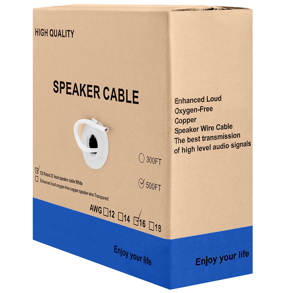 Speaker Wire 500ft 16 Gauge 2C White | In-Wall | CL2 Rated Speaker Cable Speaker Wire 500ft 16 Gauge 2C White | In-Wall | CL2 Rated Speaker Cable Speaker Wire 500ft 16 Gauge 2C White | In-Wall | CL2 Rated Speaker Cable