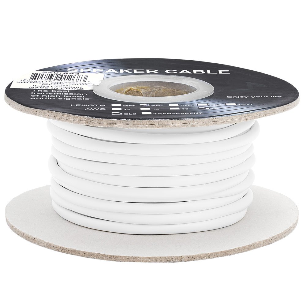 Speaker Wire 50ft 18AWG 2-Conductor White |In-Wall | CL2 Speaker Cable Speaker Wire 50ft 18AWG 2-Conductor White |In-Wall | CL2 Speaker Cable Speaker Wire 50ft 18AWG 2-Conductor White |In-Wall | CL2 Speaker Cable
