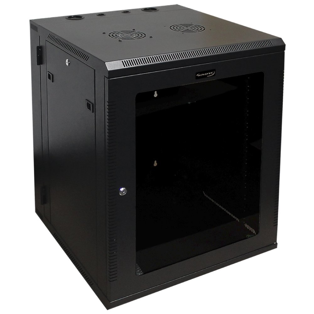15U Wall Mount Cabinet (CBTF-WM15U) Organize your Ethernet cabling and provide increase stability to your work environment. Save valuable floor space, by wall-mounting the enclosure. The wall-mounted design makes this enclosure the ideal solution for optimizing equipment storage in your classroom, retail store, server room, or office.This 15U server rack cabinet lets you mount your EIA-310 compliant equipment to the wall. The enclosure features a mounting depth of up to 24 in. and offers a maximum load capacity of 130 lbs. (59 kg) when properly secured.This server rack enclosure features heavy-duty steel construction, with a black powdered coated finish that ensures that they keep all edges and surfaces smooth, greatly reducing the possibility of injury or wear on cable jackets.Each door and panel on this rack features an independent lock, ensuring your equipment is secure. The cabinet is hinged to swing away from the wall mount bracket, so you’ll have convenient access to equipment.To ensure your equipment is running at an optimal temperature, the server cabinet promotes passive cooling. It features an extra slot for additional fan and vented top, bottom, and side panels enable air circulation.The back of the cabinet has oval-shaped holes for easy attachment to standard wall framing elements. Our wall mount cabinets are expertly built for durability and longevity!Features:Vented at sides top and bottomOne extra slot for the additional fan(One 68CFM pre-installed)Lockable front, rear doors, and side panels for added security24” depth, useable is 18“, (3 sets) of 16” on center mountClear tempered plexiglass front doorMaterial: Cold rolled steel with a black powder finishMax capacity: 130lbsDimensions: 23.6”W x 30.3”H x 23.6”DColor: BlackPackage Includes:1 x Double Section Swing Out 15U Wall Mount Cabinet2 x Key1 x Pack of Mounting Hardware