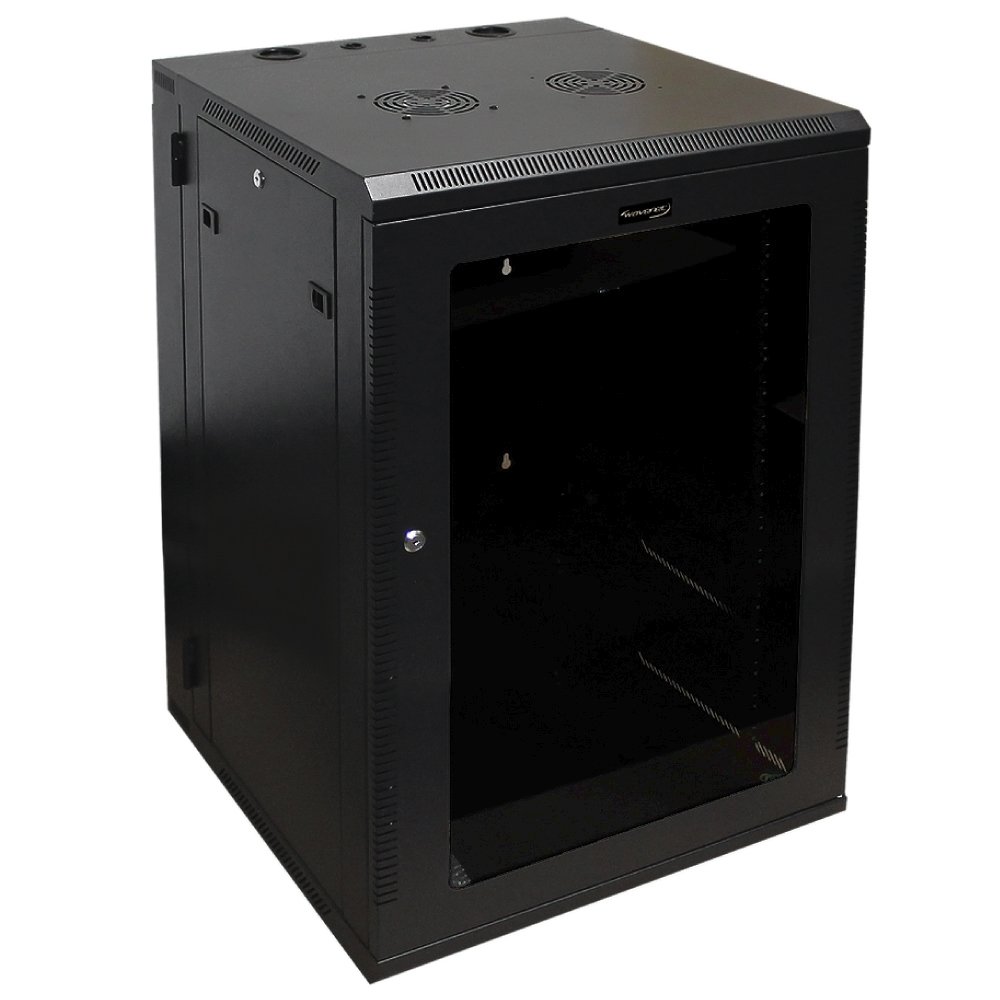Home > Wavenet - 18U Server Wall Mount Cabinet, 24-inch Depth, Swing-Out Double Section Network Enclosure with Locking Tempered Glass Door - Black