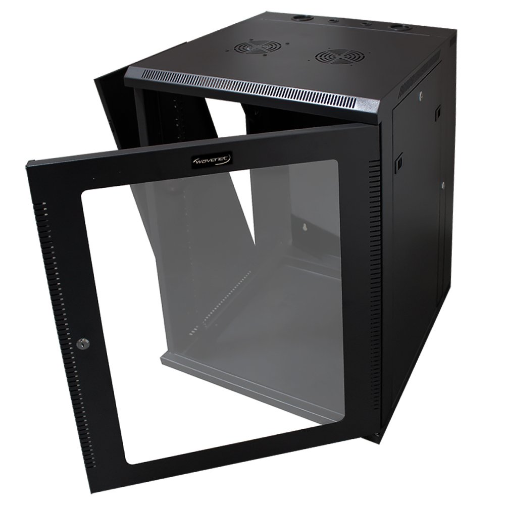 Wavenet - 18U Server Wall Mount Cabinet, 24-inch Depth, Swing-Out Double Section Network Enclosure with Locking Tempered Glass Door - Black Wavenet - 18U Server Wall Mount Cabinet, 24-inch Depth, Swing-Out Double Section Network Enclosure with Locking Tempered Glass Door - Black Wavenet - 18U Server Wall Mount Cabinet, 24-inch Depth, Swing-Out Double Section Network Enclosure with Locking Tempered Glass Door - Black