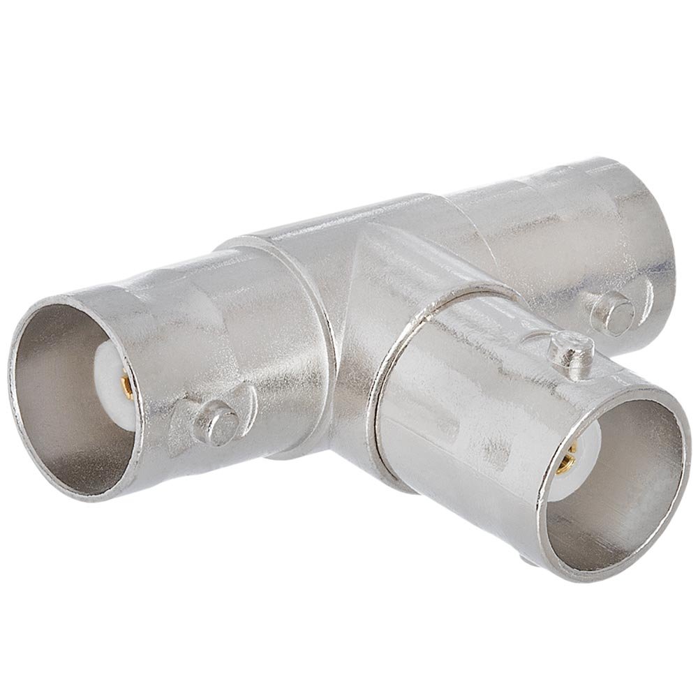 BNC Female To 2xBNC Female Adaptor This video cable adapter is a BNC tee adapter used to split coaxial cables. All three of the connections on this video cable adapter are BNC jack style designed to support simple plug and play coaxial cable BNC type connections. BNC TEE ADAPTER, 1 X Female - 2 X Female Offer you the ability to connect two BNC cables to one BNC jack Nickel plated body for enhanced corrosion resistance Connector 1: BNC Jack Connector 2: 2 x BNC Jack