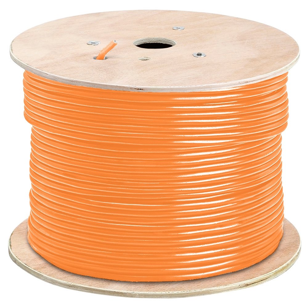 Cmple - Cat5e FTP Shielded 24AWG Solid Bare Copper Bulk Ethernet Cable - 1000FT Orange Category 5E cable is used for computer networking (10/100/1000BASE-T), data, voice, or security system installation. Wiring your home, home office, office, or even an entire factory.This Cat5e Foil Shielded Twisted Pair (FTP) Shielded Cable consists of numerous pairs of copper wiring that are encompassed in aluminum foil. The foil casing provides proper insulation that is not offered by its unshielded twisted pair (UTP) counterpart. FTP cables are most suitable for factory conditions for wired ethernet networks.Solid Shielded Cat5e Ethernet cable is commonly used for long, stationary runs, in environments with a larger amount of electromagnetic or radio frequency interference (EMI/RFI). While solid conductor cable is not as flexible as those with stranded conductors, it provides better performance over longer distances.This data communication cable can sustain up to a maximum of 350 MHz high-speed data transfer rates. It is suitable and supports fast ethernet and megabit ethernet as well as 1000BASE-T Gigabit Ethernet that offers speeds up to 1000 Mbps. The copper wiring conductor of this cable is 24 AWG which offers less heat and less resistance which allows the signal transmission to travel the greater length and this cable meets your requirement of network.Polyethylene insulation provides corrosion and chemical resistance and enhanced durability. Solid core conductors allow long-distance runs while preserving optimal performance. The PVC jacket is flame, sunlight, and UV retardant.This cable can be used with a variety of network devices that include but are not limited to computers, ethernet hubs, telephones, modems, printers, Wi-Fi repeaters, routers, servers, smart televisions, fax machines, PoE, IP Cameras, switches, game consoles, Xbox, PlayStation, Apple TV, Smart TV's, and more. Supports 1000BASE-T Gigabit Ethernet, PoE, and PoE+ (IEEE 802.3af/at) up to 30W and 300V DC.Features:Comes in a pull-out boxFlame Retardant PVCHigh-performance data cableSuitable for high bandwidth voice and data installations4 Shielded Conductor Pairs24 AWG solid bare copper conductorsCable Length: 1000 FTColor: OrangeStandards:ETL Listed CMR Type FTPC(ETL) listed FT4 FTPETL Verified to TIA - 568-C.2, and ISO/IEC 11801ROHS CompliantATM 155 MbpsEthernet 10BASE-T, 100BASE-TX, 100BASE-VG, 100BASE-T4,1000 Mbps 1000BASE-T Gigabit Ethernet™ (IEEE 802.3)