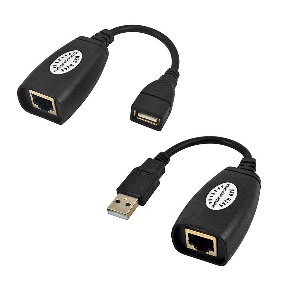 RJ45 Cat Cable Extension Cable USB 2.0 Extender Over RJ45 Cat5 Cat 5e Cat6 Cable Extension Cable Connector Adapter KitThis USB extension adapter allows you to connect your USB device to your computer at up to 150ft with the help of a Cat5/Cat5e/Cat6 patch cable. This adapter will allow you to have your computers, USB web camera, game console printer, mice, keyboard, or any other USB device exactly where you want it without having to move around your computer. Self-powered - this adapter does not require any external power source. It is compatible with most USB-compatible devices.Package includes 1 Pair of USB Extension Adapter:1 x RJ 45 + USB FEMALE Extension adapter1 x RJ 45 + USB MALE Extension adapter